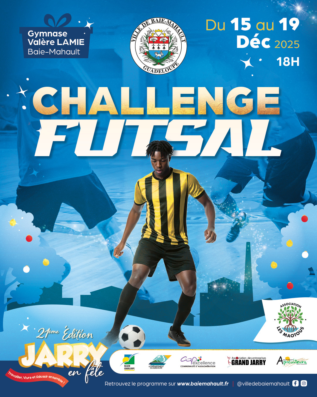 La Ville de Baie-Mahault vous invite à vivre une nouvelle édition du Challenge Futsal, organisée dans le cadre de la 21ᵉ édition de Jarry en Fête.