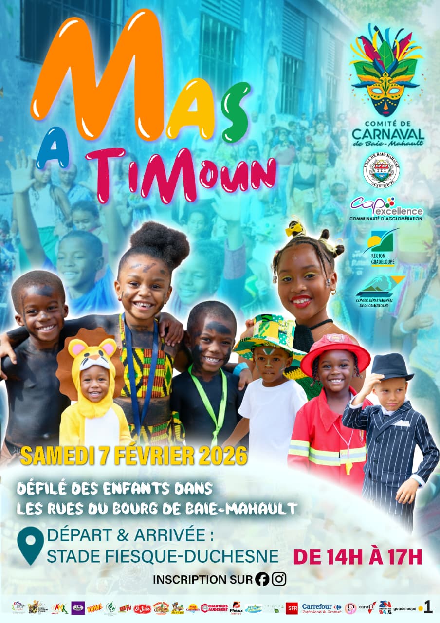 La Ville de Baie-Mahault, en partenariat avec le Comité de Carnaval de Baie-Mahault, organise Mas a Ti Moun, un défilé carnavalesque spécialement dédié aux enfants.